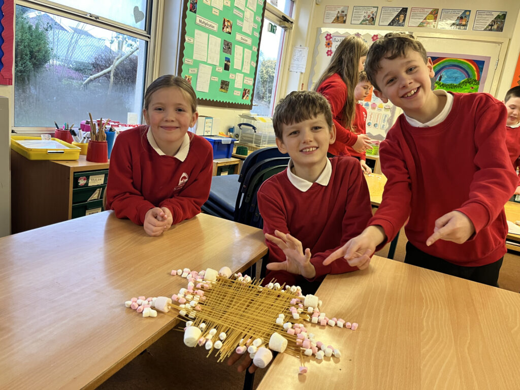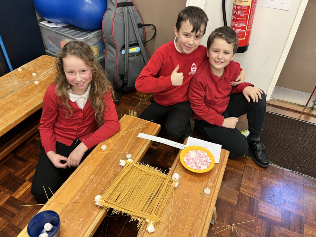 Celyn class had fun using spaghetti and marshmallows to build a good, strong bridge structure. The children had to work well in groups, use communication skills and assign each other job roles. Their task was to build a bridge structure that would bridge a 20cm gap and hold a 1lb weight for 30 seconds. All bridges were successful! Here are some of them: