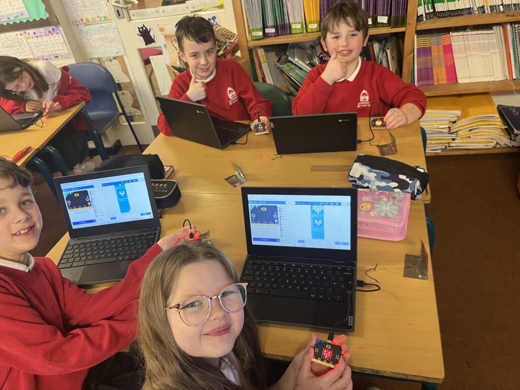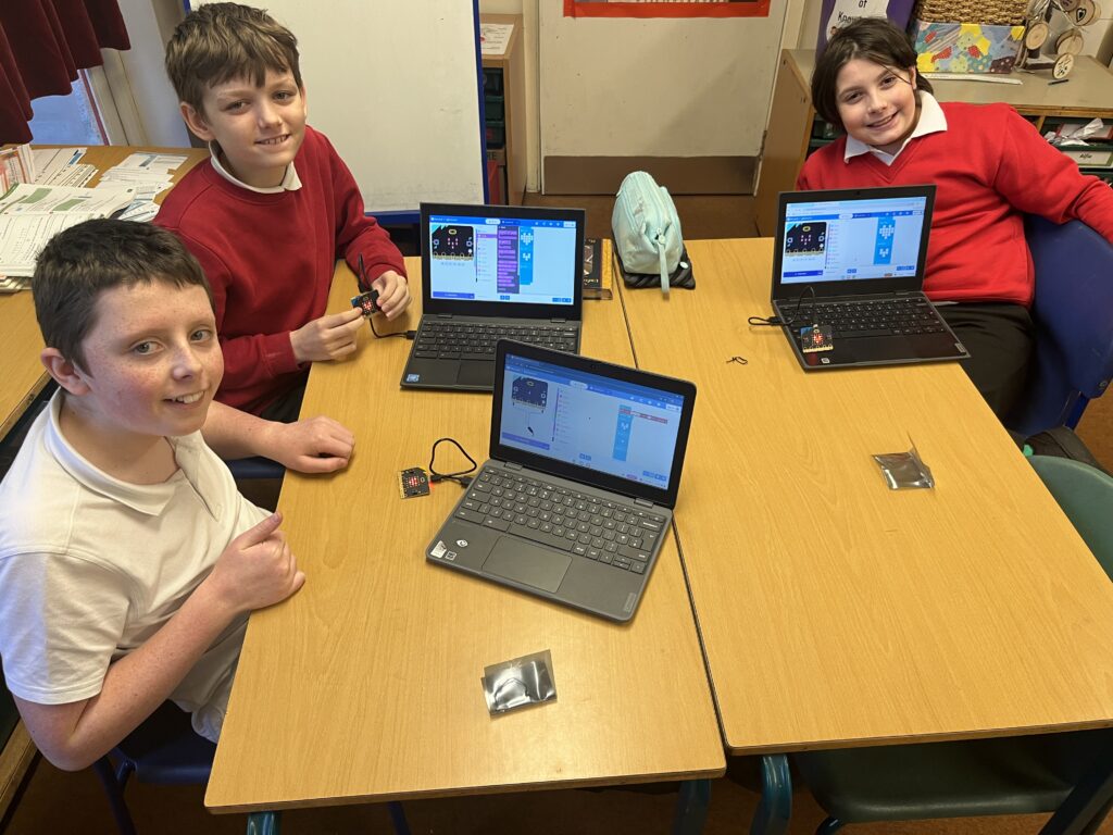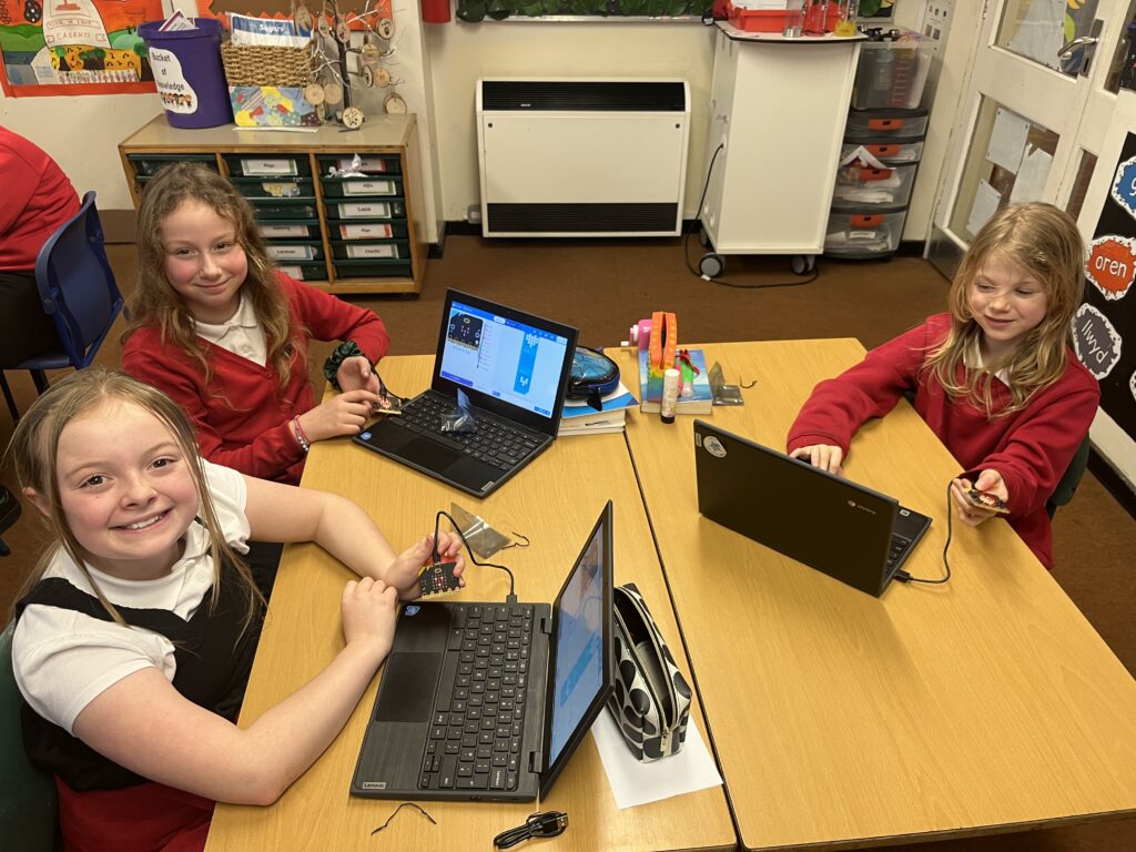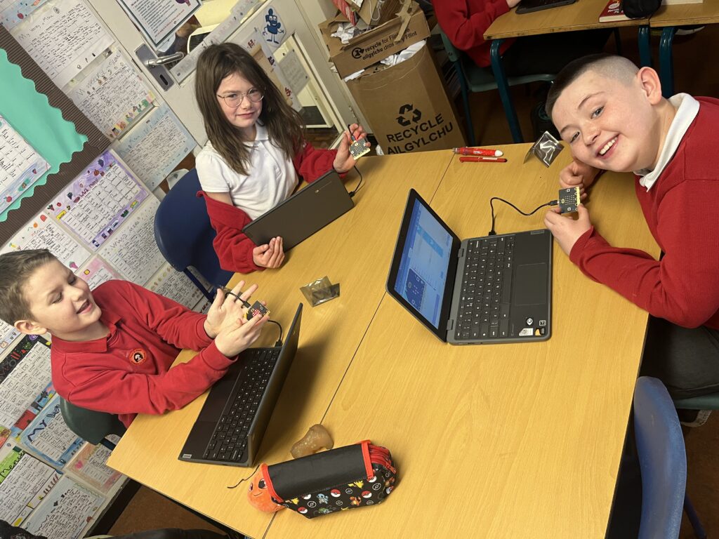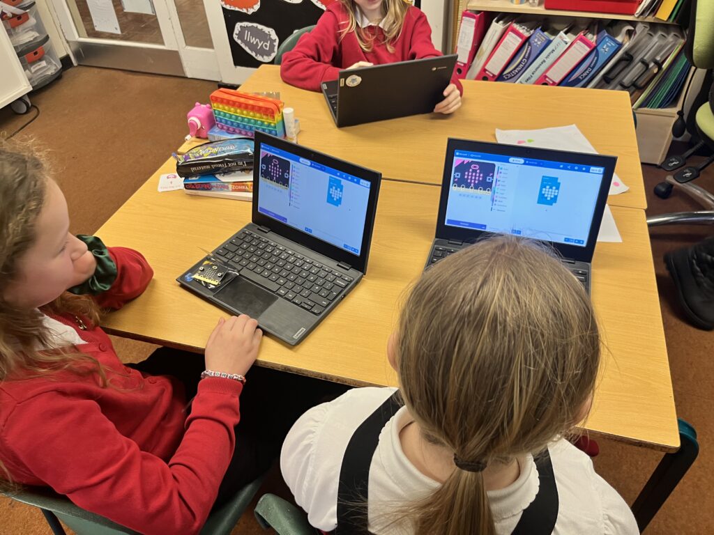 Celebrating Welsh Valetine’s Day – the children learnt all about the history of St Dwynwen’s Day and then did something a little bit different this year! Celyn class were using their coding and programming skills to create flashing red hearts onto their microbit circuit board. They had lots of fun using the technology and some children even coded some music to go alongside their flashing hearts.